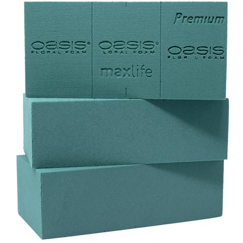 Flowerbox 3 x Original Oasis® Premium skumgummi – 3–4 dagar extra fräscha blommor genom MaxLife-impregnering – 23 x 11 x 7,5 cm – våtskum för blommor, bröllop, födelsedag, kyrka