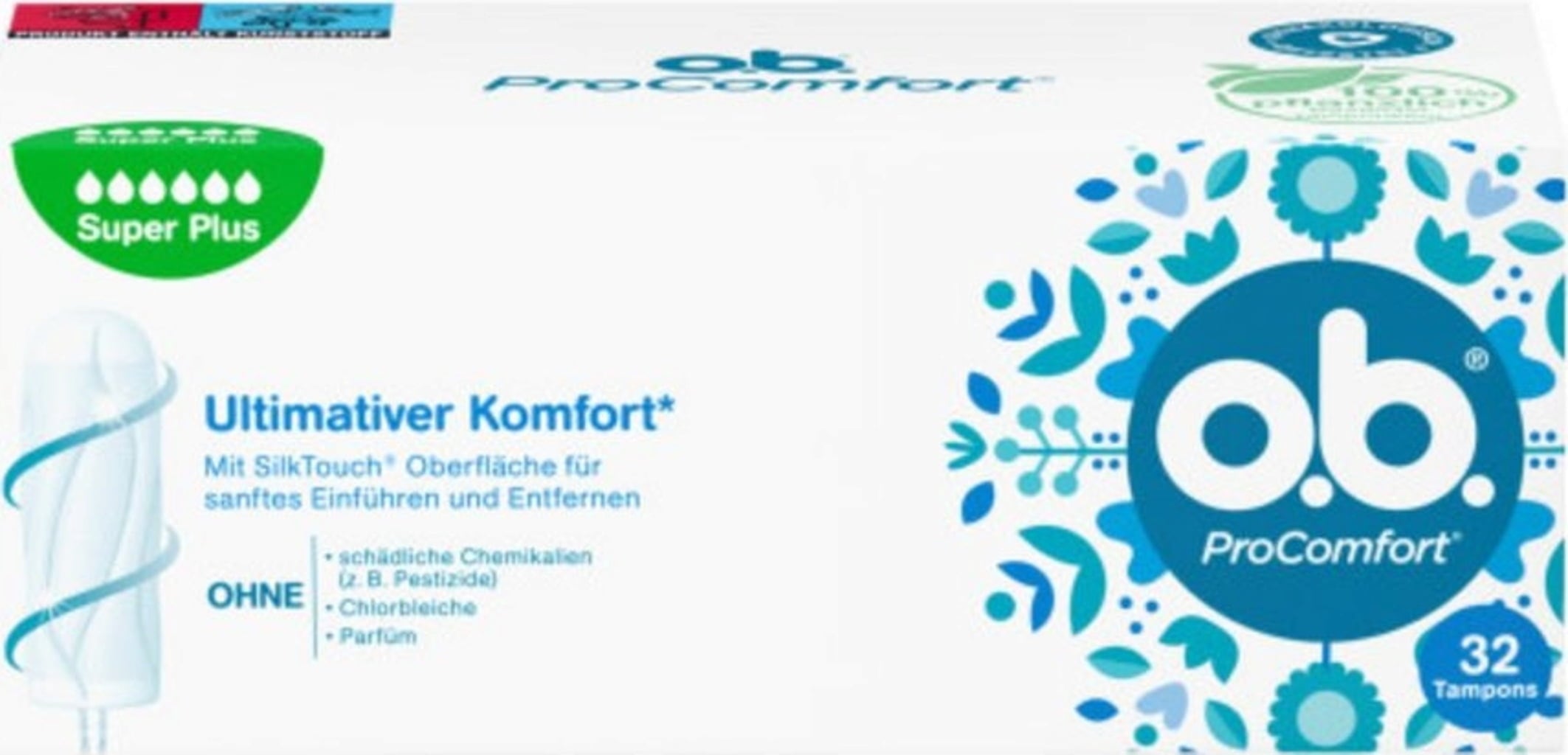 o.b. ProComfort Super Plus, tamponger för mycket starka dagar med Dynamic Fit-teknik och SilkTouch-yta, för ultimat komfort* och tillförlitligt skydd (1 x 32 stycken)