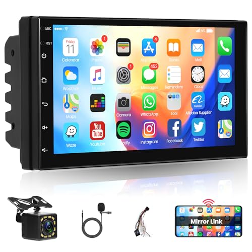 Android 13 bilradio 2 Din med GPS-GPS WiFi IOS/Android Mirror Link ISO-kabel 7 tums pekskärm bilradio med Bluetooth FM-radio DAB/OBD/DVR/USB/EQ rattstyrning backkamera mikrofon