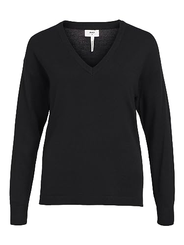 OBJECT COLLECTORS ITEM dam Objthess L/S V-ringad stickad pullover noos tröja, Svart, S