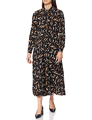 OBJECT COLLECTORS ITEM Objlorena L/S lång skjorta, klänning Noos skjortblusklänning, Black/Aop: sepia/sandshell, 38