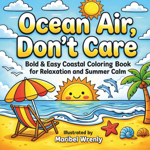 Ocean Air, Don’t Care: Bold and Easy Coloring Book for Relaxation and Summer Calm: Simple Beach, Coastal, and Tropical Designs with Thick Lines for Stress-Free, Marker-Friendly Coloring