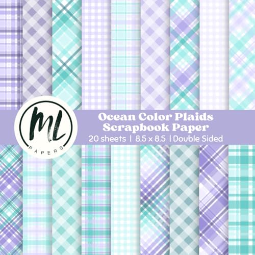 Purple and Mint Plaid Scrapbook Paper Pad: Ocean Colors Plaid Craft Paper Pad, Purple Gingham Craft Paper for DIY Card Making, Scrapbooking, Junk ... Crafts for Kids, Double-Sided, 8.5 x 8.5 inch