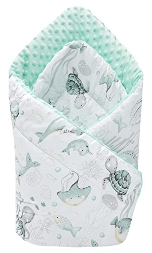 Medi Partners Slagtäcke plug-in kudde Minky 100% bomull 75 x 75 cm sovsäck dubbelsidig mjuk året runt multifunktionell antiallergiska spädbarn (ocean med mint Minky)