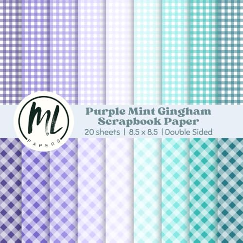 Purple Mint Gingham Scrapbook Paper: Ocean Plaids Collage Papers, Mermaid Theme Craft Paper for DIY Card Making, Scrapbooking, Junk Journaling, Mixed ... Arts and Crafts for Kids, 8.5 x 8.5 inch