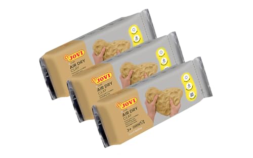 Jovi – lufttorkad modelleringslera, set med 3 enheter, 0,5 kg vardera, totalt 1,5 kg, ingen ugn behövs, ockra färg, keramiklera för konst- och hantverksprojekt (P88/3)
