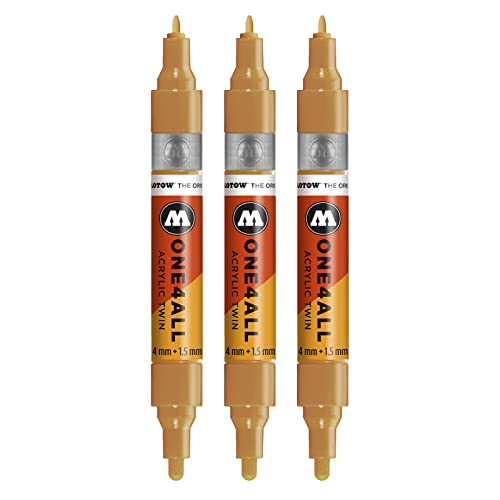 Molotow One4All Acrylic Twin Marker (linjebredd 1,5 mm och 4 mm, hög täckning och permanent), 3 stycken färg 108 ockra brun ljus
