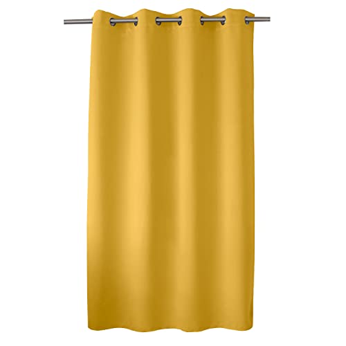 Enjoy Home, Ockult gardin med 8 kromade metallöglor diameter 4 cm, 100% polyester, 140 x 240 cm, Oeko Tex-certifierat, redo att installera, lätt att rengöra, grundläggande kollektion, senapsfärg