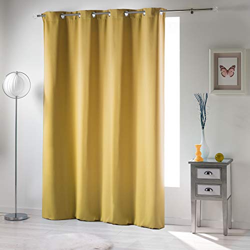Enjoy Home - ockult gardin med 8 kromade metallöljetter 4 cm - 100% polyester - 140 x 180 cm - Oeko Tex-certifierat tyg - redo att installera - lätt att rengöra - grundläggande kollektion - gul färg