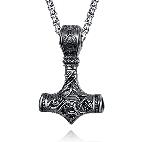 KINGWHYTE Viking Tors hammare talisman varg halsband 925 sterling silver nordisk vintage viking Vegvisir Mjolnir Odin kompass amulett hänge med rostfritt stål 55 cm (20+2 tum), Sterlingsilver, Ingen