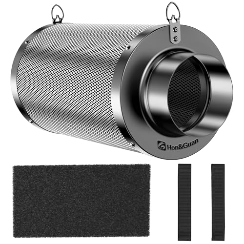 VIVOSUN Aktiverat kolfilter 100 mm/4 tum, kolfilter luktkontroll med australiensiskt aktivt kol för rörfläkt, luktneutraliserare för växttält, inkluderar förfilter, för odlingstält inomhus