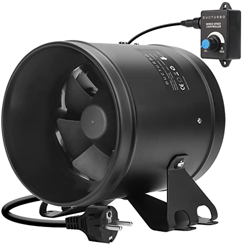DUCTURBO Inline Rörfläkt Kanalfläkt 150mm Extraktorfläkt, Max 594m³/h Frånluftsfläkt för Ventilation Kraftfull Avgasfläkt med Variabel Hastighetsregulator för Badrum, Odlingstält, Hydroponik