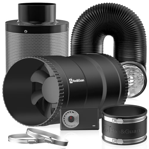 Hon&Guan 100 mm ventilationsset 221 m³/h Inline-rörfläkt, komplett set med varvtalsmätare, aktivt kolfilter, frånluftsblandare, gummirör, ventilationssystem för odlingstält, växthus