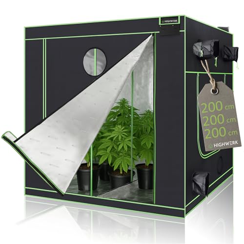 HIGHWERK Växttält 200 x 200 x 200 cm | Inomhusodlingstält för växtodling | svart grön | odlingslåda, homegrow, odlingstält, växthus, inomhusträdgård