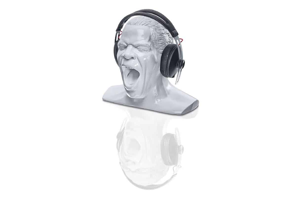 Oehlbach Scream Unlimited - Hörlursstativ i form av det legendariska Oehlbach-huvudet - Optimal förvaring av större over/on-ear-hörlurar handgjorda - Svart