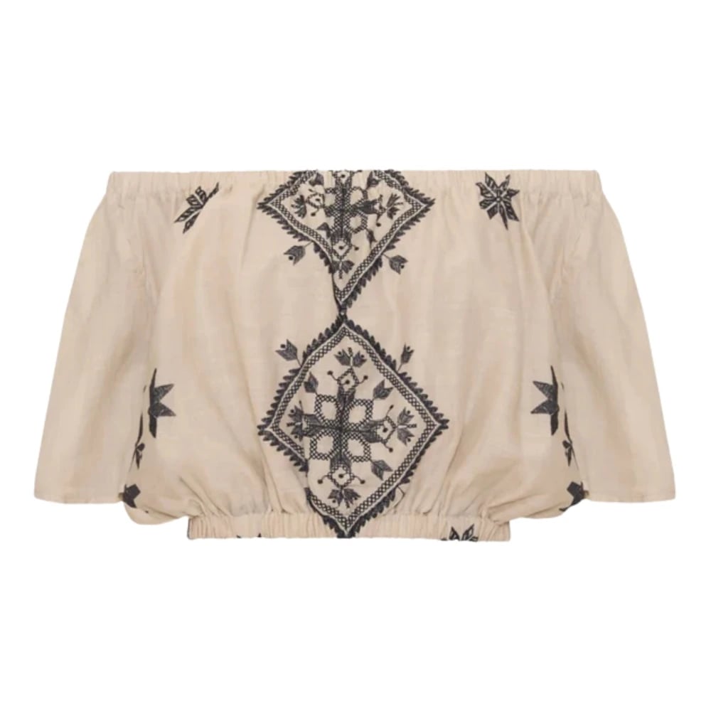 Motivi, Toppar , Dam, S, Polyester, Finstickad off-shoulder-topp