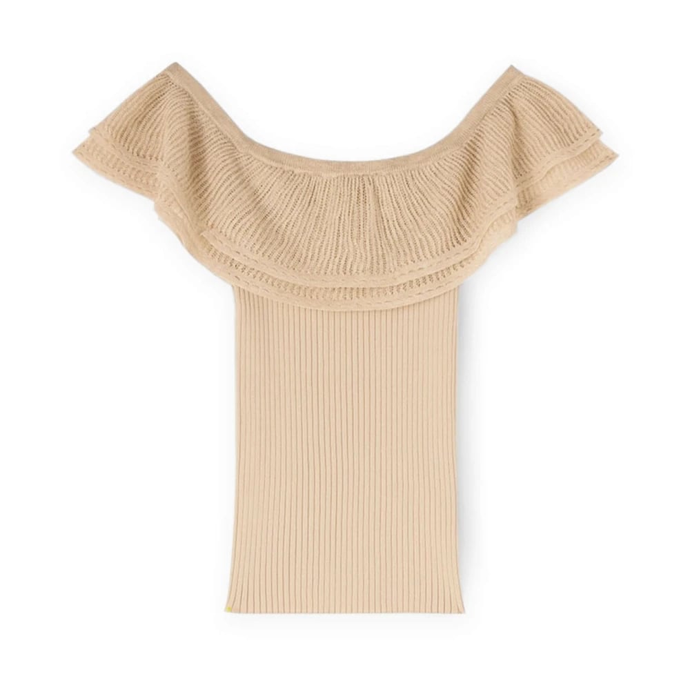 Courrèges, Stickade Tröjor , Dam, S, Rippad Off Shoulder Topp
