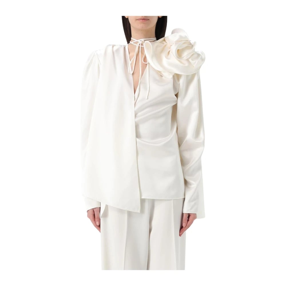 Magda Butrym, Blusar & Skjortor , Dam, 2Xs, Vit Silk Off-Shoulder Topp