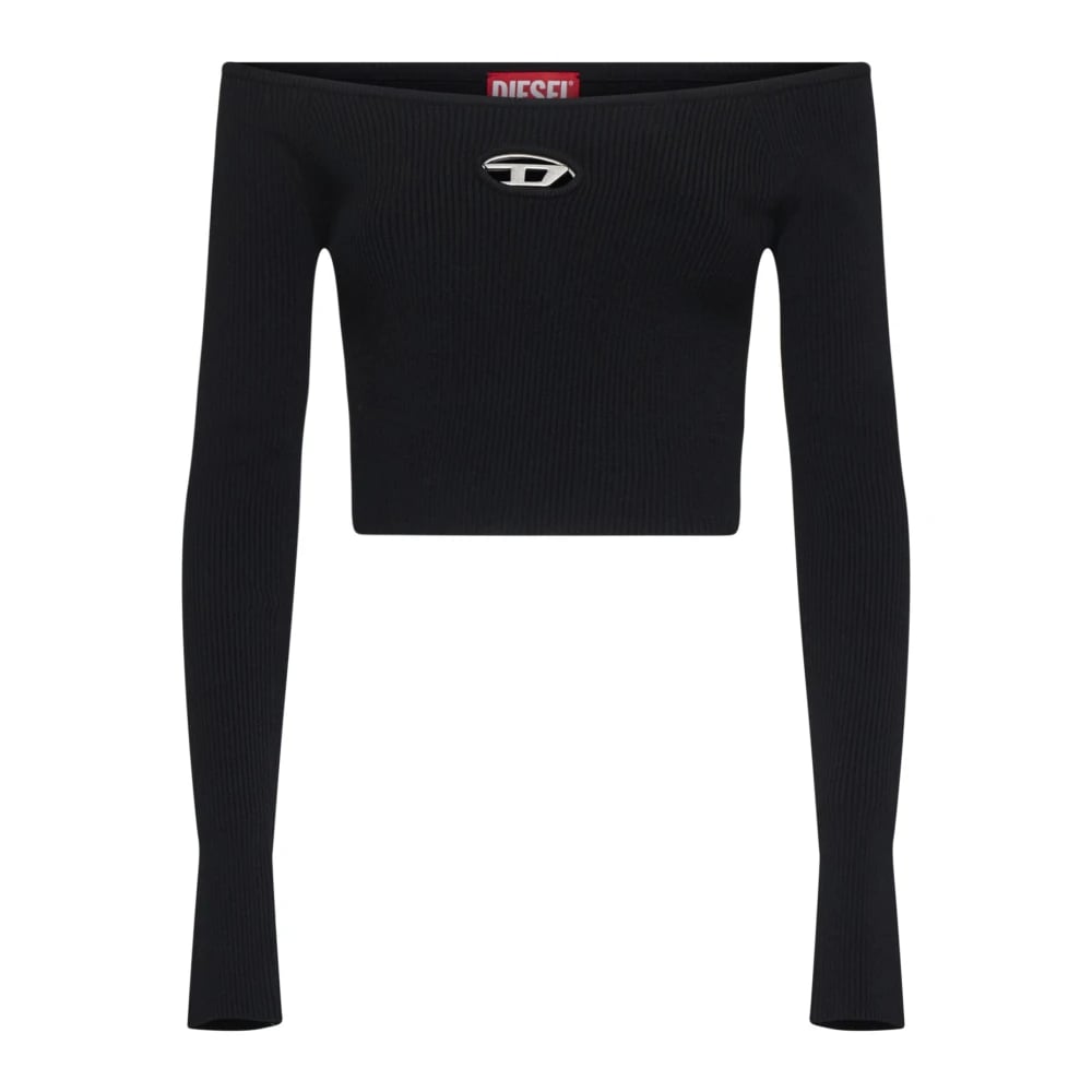 Diesel, Toppar , Dam, M, Polyester, Off-shoulder Ribbstickad Topp Svart