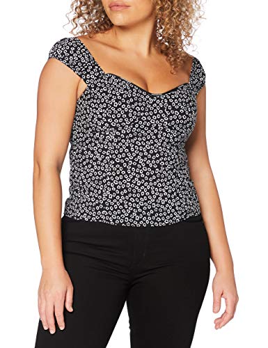 Calvin Klein Jeans Dam Off The Shoulder blommig topp skjorta, Svart, XS