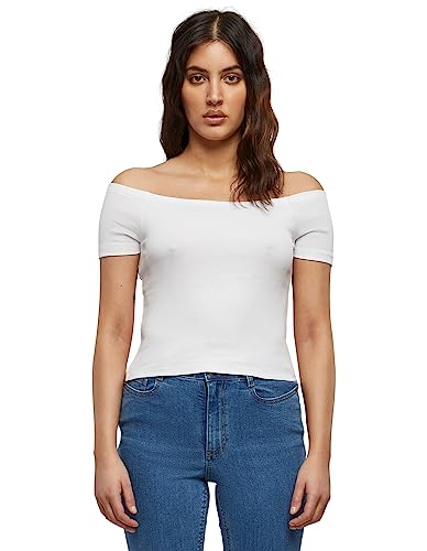 Urban Classics Dam Dam Off Shoulder Rib T-shirt, Vit, XS
