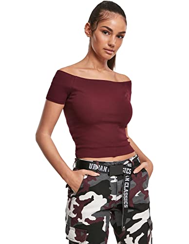 Urban Classics Dam Off Shoulder Rib T-shirt för kvinnor, Redwine, S
