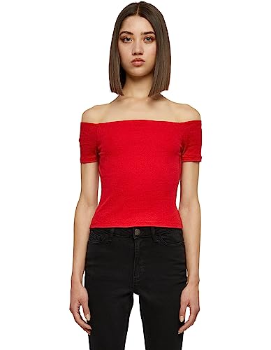 Urban Classics Dam Dam Off Shoulder Rib T-shirt, Eldröd, M