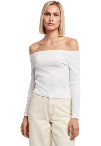 Urban Classics Dam Dam Off Shoulder Rib långärmad T-shirt, Vitt, 5XL