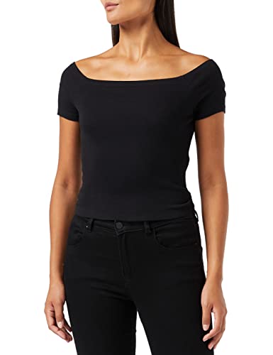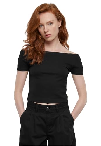 Urban Classics Ladies Organic off Shoulder Rib Tee T-Shirt, Svart, XL Dam, Svart, XL