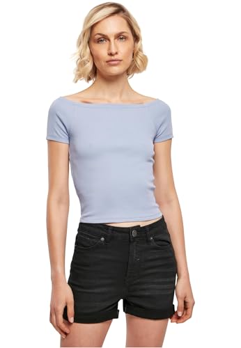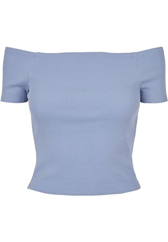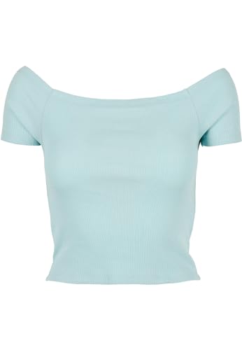 Urban Classics Dam-t-shirt dam, off shoulder-ribbad t-shirt, topp för kvinnor med kort snitt och fria axlar i många färger, storlekar XS – 5XL, sjölue, 5XL