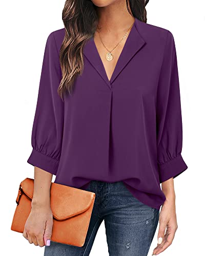 Unixseque Blouses for Women 2024 Trendy,3/4 Sleeve Womens Chiffon Tunic Tops Ladies V Neck Dress Shirts for Office Work Business Casual Shell Top Professional Attire Blouse Casual Elegant Flowy Tops