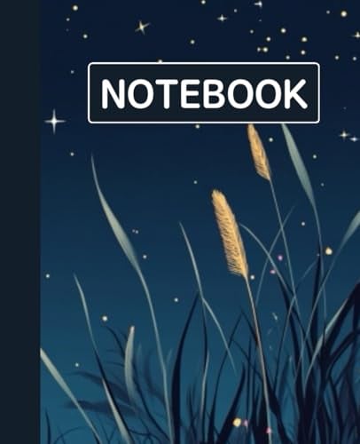 dotted line inlay Notebook for writing, for work, 7x9, notes in school, university, college, office, home. For student.: Reeds and stary in the night sky