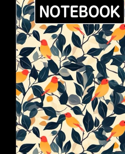 line inlay Notebook for writing, for work, 7x9, notes in school, university, college, office, home. For student.: Birds and flowers pattern