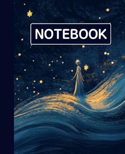 Ruled line inlay Notebook for writing, for work, 7x9, notes in school, university, college, office, home. For student.: fairy tale night sky