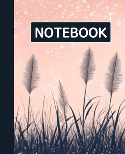 Ruled line inlay Notebook for writing, for work, 7x9, notes in school, university, college, office, home. For student.: Reeds and stary in the night sky