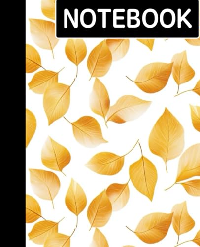 Line inlay Notebook for writing, for work, 7x9, notes in school, university, college, office, home. For student.: golden leaves