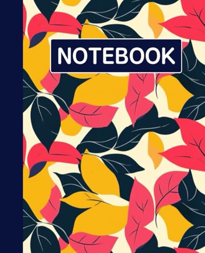 Ruled line inlay Notebook for writing, for work, 7x9, notes in school, university, college, office, home. For student.: leaves pattern