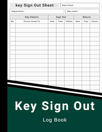 key Sign Out Log Book: Keep Track And Record Sheets For Home, Office & Small Business Security