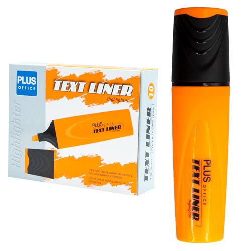 Plus Office Fluorescerande överstrykningspennor, markörpenna med avfasad spets, paket med 10 vattenbaserade fosforescerande markörer, neonfärg (orange)