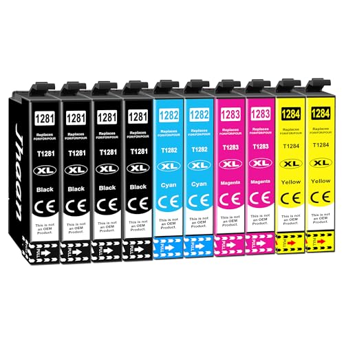Jhaan T1281 T1282 T1283 T1284 Bläckpatroner Kompatibla med T1285 bläckpatroner för Stylus SX125 SX420W S22 BX305F Office BX305FW SX130 SX440W BX305FW SX435 SX235W (Paket med 10)
