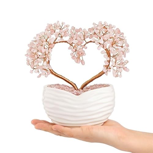 Heart Money Tree Ornaments,Energy Healing Stones Tree of Life, Chakra Gemstone Crystal Tree for Feng Shui Home Office Table Decorations (Color : Rose Quartz)