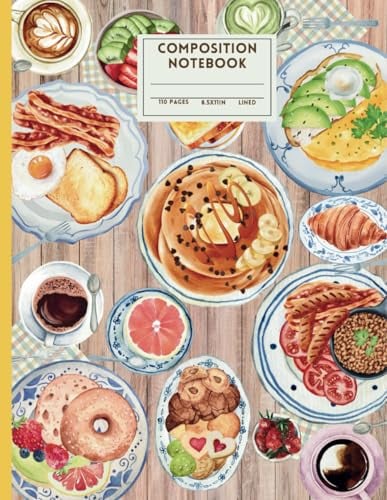 Composition Notebook College Lined: Cozy Brunch Table Journal Diary | Cute Wholesome Breakfast Theme Stationery for Back to School, Home, Office & College | Foodie Gift 8.5x11