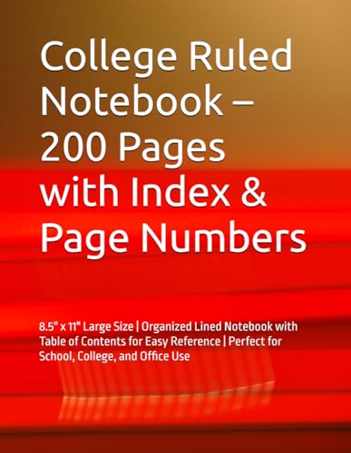 College Ruled Notebook – 200 Pages with Index & Page Numbers: 8.5" x 11" Large Size | Organized Lined Notebook with Table of Contents for Easy Reference | Perfect for School, College, and Office Use