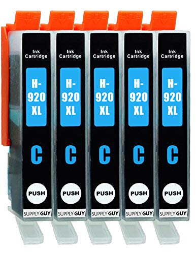 Supply Guy 5 bläckpatroner kompatibel med HP 920 XL 920XL HP920XL CD972AE (Cyan) avsedd för HP OfficeJet 6000 6500 6500a 6500a plus 7000 7500a