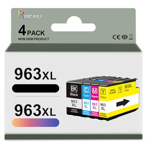RUICAILI Kompatibel med 963XL 963 bläckpatroner för OfficeJet Pro 9010 9012 9013 9014 9015 9016 9018 9019 9020 9022 9023 9025 9026 9027 9028 9029 skrivare, förpackning med 4 st