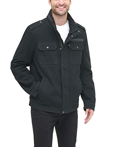 Levi's herr tvättad bomull militärjacka (vanliga och stora och höga storlekar) lätt, Svart ofylld, M