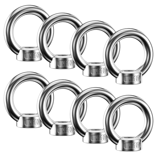 Lectorias 8 stycken ringmuttrar M10, 304 rostfritt stål ögonskruv, ögonmuttrar, ögleskruv, öglemor, öglemutter, rostfritt stål ögla, ringmuttrar, ringskruvar, ringskruv för lyfttillbehör
