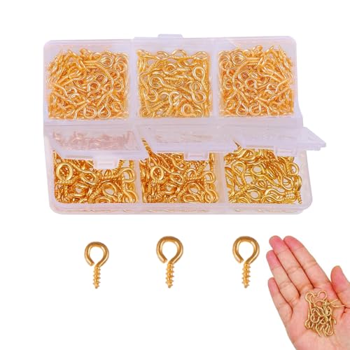 400 stycken skruvkrokar små, skruvöglor öljettskruvar, små krokar för skruvning, ringskruv, ögleskruv med förvaringslåda, 3 storlekar guld, öljetter för smycken, berlocker, pärlor