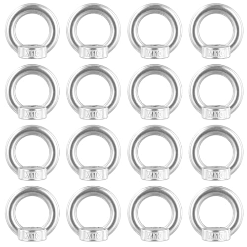 Funsuei 16 stycken ringmutter M10, ögonmutter rostfritt stål, ringskruv med ögleskruv för skruvning, hängning, lyfttillbehör, silver