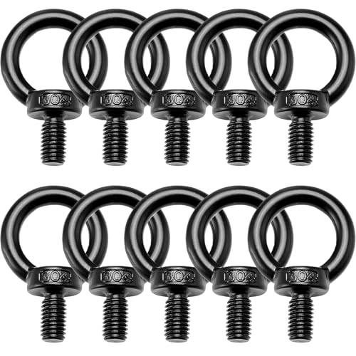 ORTAVA 10 stycken ringskruvar M6, ögonskruv av rostfritt stål A2V2A, svart oxid, ögleskruv M6 för upphängning och fastsättning
